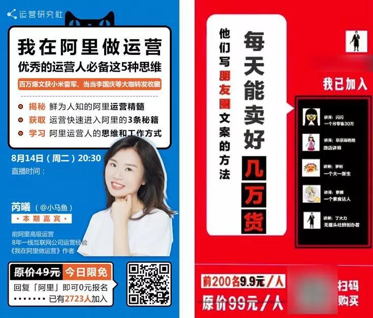 最近朋友圈经常出现一些卖课海报,有一些做的惨不忍睹,完全没有让人想点击的欲望。 不过也有一些海报,不仅能够立刻扫码进去,还能让你心甘情愿的转发。比如有一张海报的主题是:“你有多久没有读完一本书了?”。 有书仅通过这张裂变海报,一年就涨了1000万粉丝,可见这张海报的吸粉能力有多强。 这张海报让我觉得没有读完一本书十分罪恶,加上后续的引导,我立刻就扫码进群了。 同样,还有很多号通过裂变海报快速涨粉,比如十点读书会,一年涨粉 100 万。新世相一张裂变海报,仅 3 个半小时就吸引9w人入群。 为了找到这些“爆款”裂变海报背后的共同规律,笔者看了不下几百张裂变海报,再加上我们过去的实操经验(微课),我总结出了一条可复制的公式: 成功裂变海报=目标人群+痛点+包装+可信度+紧迫感+畅销 怎么写出戳用户的主标题?主标题是一张海报的灵魂,如果主标题没法在3秒内抓住用户,那这张海报基本上就相当于废了。 怎么做很简单,就是要抓住用户的痛点。 有人说我这是废话(貌似的确是),所以接下来我们不讲废话,教大家怎么抓住用户的痛点。 1)呈现结果首先,最重要的一点,一定要体现结果!做了 N 次海报后,我们得出的惨痛教训。 什么叫结果呢?先来看两版文案: ●如何写出完美的简历?●学会这10 招,让你简历通过率翻倍大家觉得哪个版本更加吸引你?不出意外的话,应该是第 2 版,主要有 2 个原因: 首先,第一版体现的是过程,比起写出完美的简历,其实我更加在意的是结果。比如能不能进 BAT?或者是能不能提高我的简历通过率,接到更多的面试邀约? 其次,第一版还犯了一个致命的错误,修饰词太笼统。什么叫做完美的简历?这个是没有评判标准的。 完美的简历,就相当于今天我要分享一个主题:如何成为一个好人,或者是如何成为英语大神?怎么样,是不是感觉有点扯?“完美”两字根本没有把事情讲清楚。 我们之前的海报也犯了同样的错误,看下面两版: