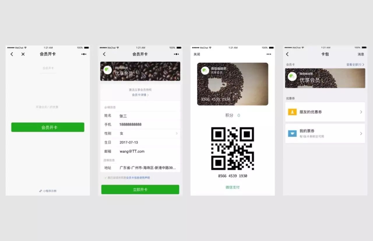 为提升微信会员卡商家在小程序内的开卡效率,帮助用户注册会员时快速填入信息,小程序和微信卡包提供了小程序开卡组件的能力,供开发者使用。